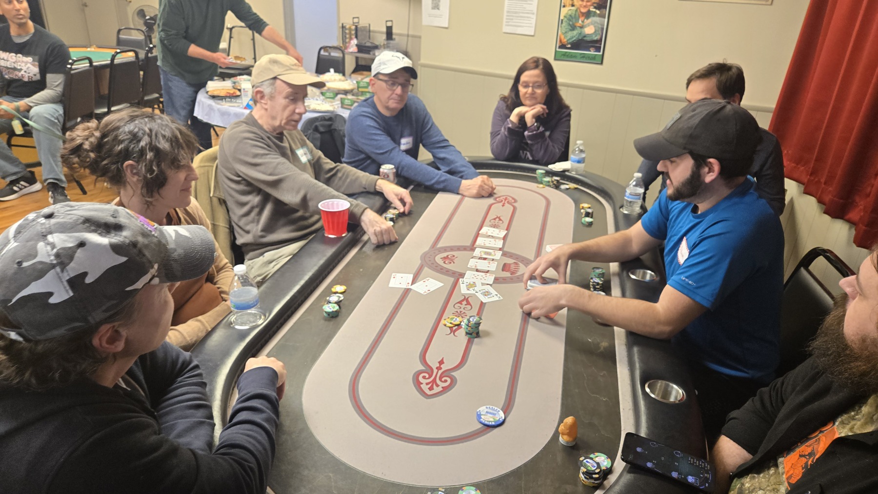 On Friday, January 23rd, 2026, the WGA Poker Group held a feast for both the eyes and stomach as 40 players gathered for our National Pie Day Poker Tournament where the cards were hot, the bluffs were flaky, and the pies were plentiful. From apple to cherry to banana cream, we all enjoyed a spread of delicious desserts to fuel our hunger for poker victory. 🍎🍒 🍌🥧