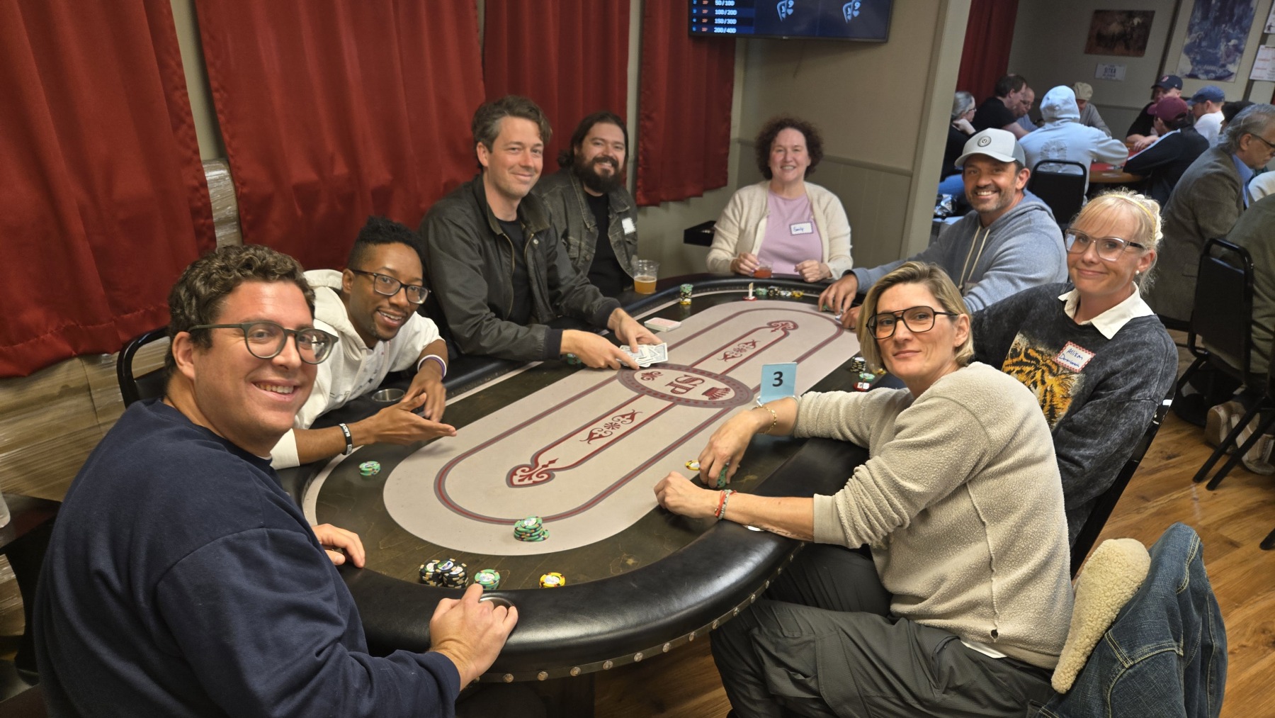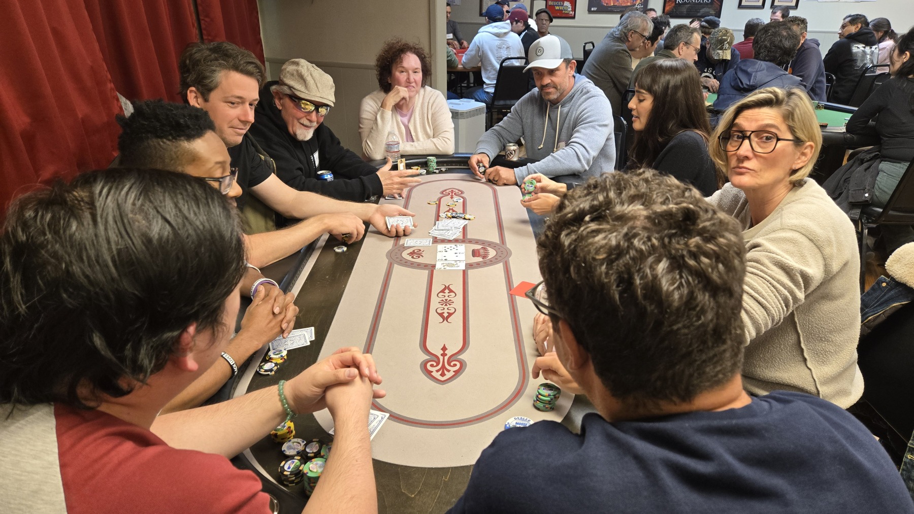 Just like a classic “Friends” Thanksgiving episode, the night had everything: dramatic twists, hilarious punchlines, and enough tension to make us all shout “Oh… my… God!” 😱 After several hours of play, we arrived at our final table of ten. Now let’s see who carved up the competition and who ended up looking like a fool with Monica’s turkey stuck on his head. 🦃😵💫