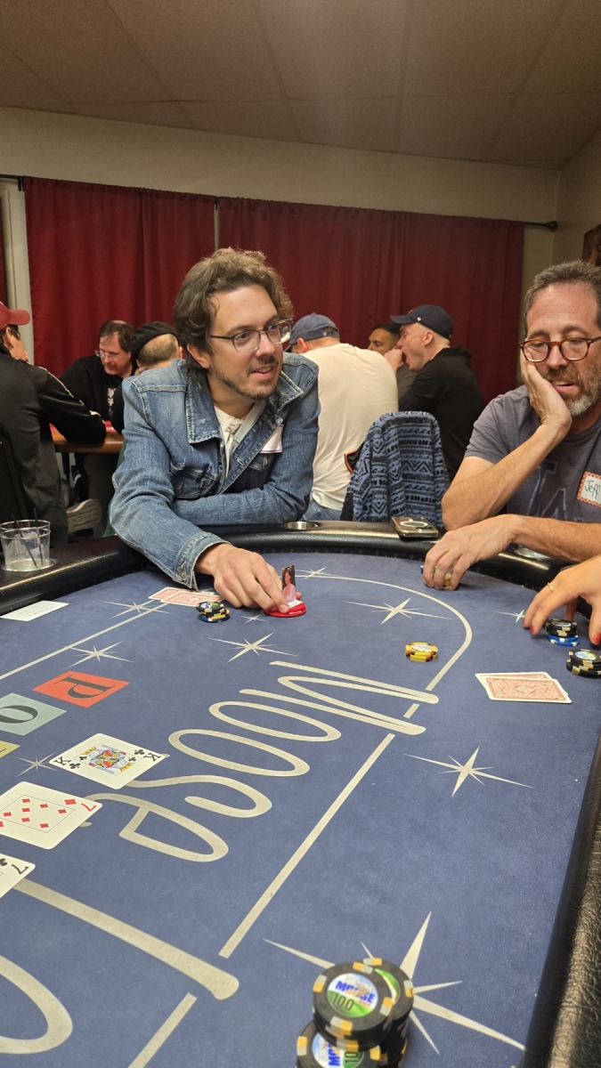 Down to table scraps, Gautham Nagesh shoved all-in with K♥️️9♠️️ from the small blind, receiving an auto-call from Vince “Birthday Boy” Pavia in the big blind holding 7♥️️8♠️️. Unfortunately, Gautham would get bamboozled when the wicked wango card fell on a flop of 8♥️️5♣️️Q♠️️, giving Vince the lead. The 2♦️️ and 6♥️️ on the turn and river changed nothing, ending Gautham’s run in 7th place — just like Joey Tribbiani’s career as a game show host. WATCH 🎦