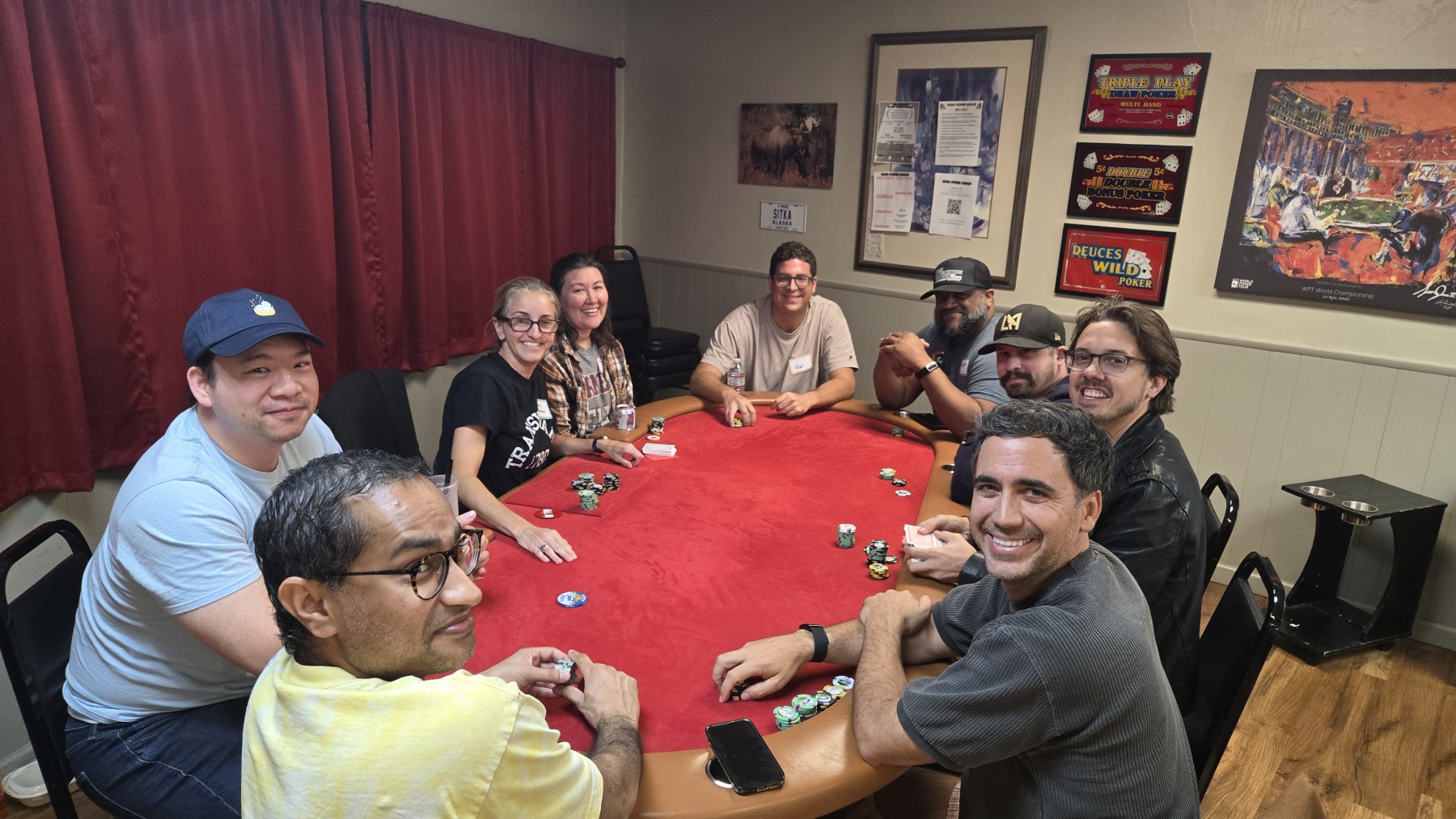 Special thanks to my wife, Nichole, for helping run the tournament as well as to Jay Moriarty and the Burbank Moose Lodge. I’d also like to thank our amazing dedicated dealers — Tyler Wong, Randi Barnes, Joe Boothe, Henry Harper, Vince Pavia, Christian Bersani, and Lisa Dickey.