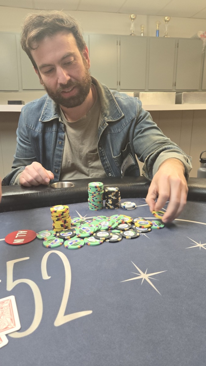 With three players left, we would soon witness one of the greatest sun runs in tournament history with Tyler doubling up through Nick not once, not twice, but THREE times when his A♦️9♦️ caught a straight on the river against Nick’s two pair (Q♠️T♦️) on a Q♥️8♥️6♥️T♣️J♣️ board.  Brutal!