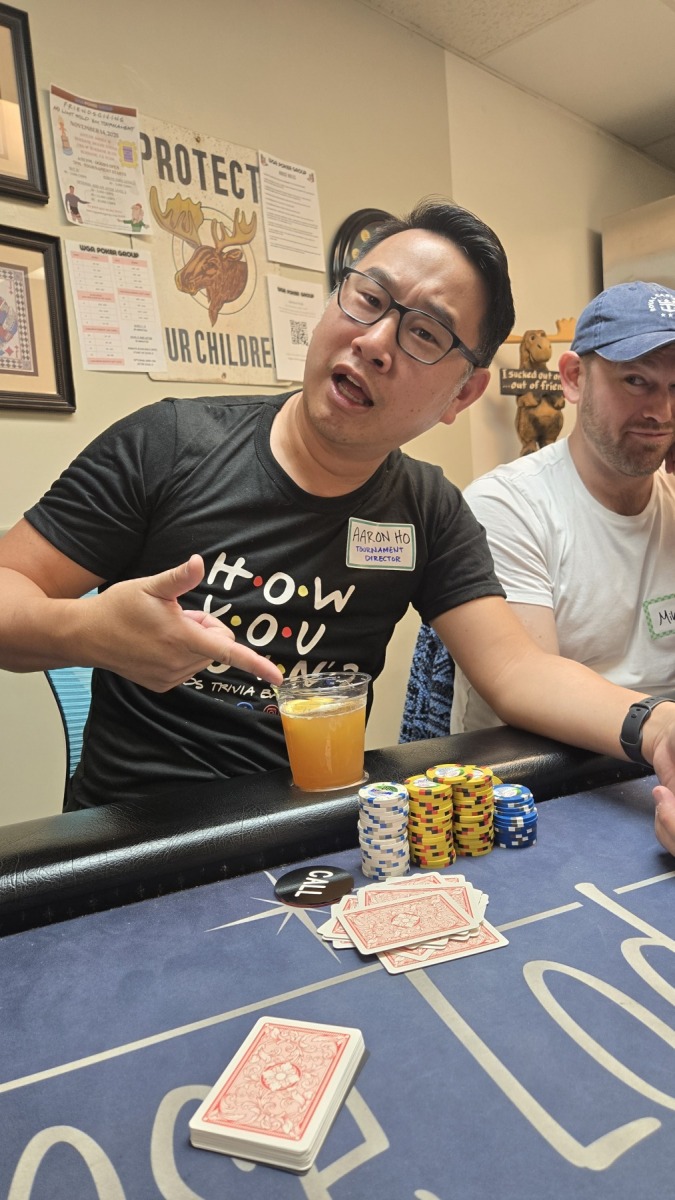 At last, it was time to PIVOT to the heads-up match! In this battle of titans, 2x WGA Poker Group champion, Dylan Brody, faced off against WGA Poker Group founder, Aaron Ho. Who would win our version of the Geller Cup while the other becomes just another “moo point?” 🐮