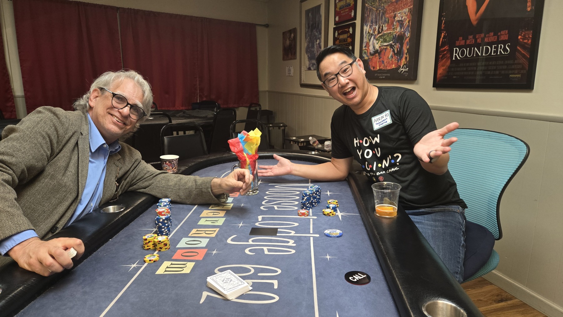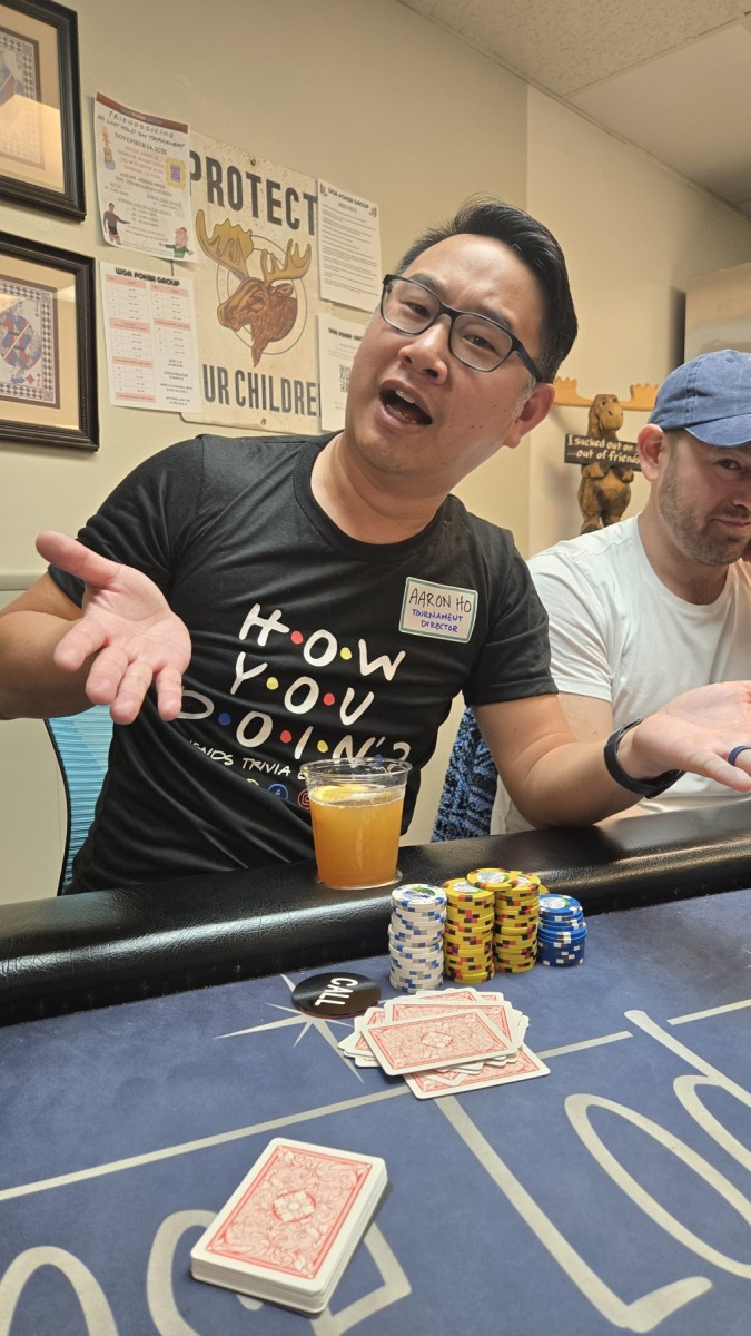 At last, it was time to PIVOT to the heads-up match! In this battle of titans, 2x WGA Poker Group champion, Dylan Brody, faced off against WGA Poker Group founder, Aaron Ho. Who would win our version of the Geller Cup while the other becomes just another “moo point?” 🐮