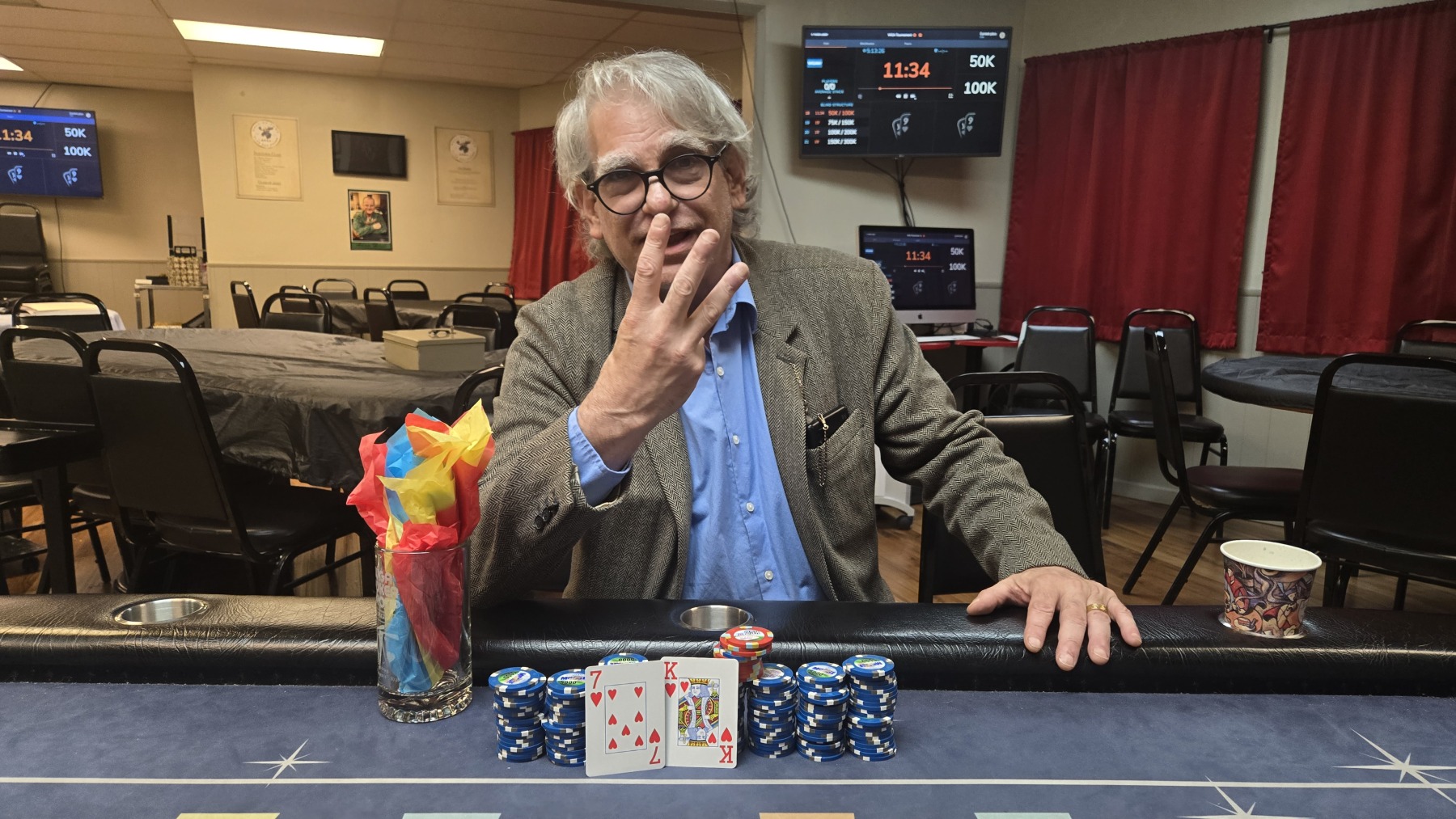 As the clock turned to midnight, could Vince make his birthday wish of doubling-up come true? After Aaron opened from the cutoff, Vince called all-in from the big blind. Unfortunately, Vince’s 7♥️️5♥️️ was dominated by Aaron’s K♥️️5♠️️. As the dealer slowly dealt the flop, the window card revealed a “seven… seven… SEVEN!!!” It looked like Vince might actually get his wish… until the 7♠️️ slid over to unveil a K♦️️ and 2♠️️ hiding underneath, giving Aaron top pair and the lead. The 6♠️️ and 8♦️️ on the turn and river were no help, eliminating Vince in 4th place as he screamed, “Why, God, why? We had a deal. Let the others grow old, not me!” 😩🎂 WATCH 🎦
