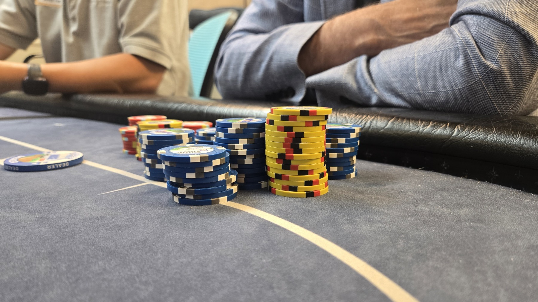 With K♦️️6♦️️, Trevor “Larry David” Kess shoved all-in against Mike’s Q♥️️5♠️️ on a flop of 2♣️️8♣️️5♦️️. The turn 4♠️️ gave him a gutshot straight draw, but the river 10♠️️ would mark a series wrap on Trevor, bowing out in 4th place.